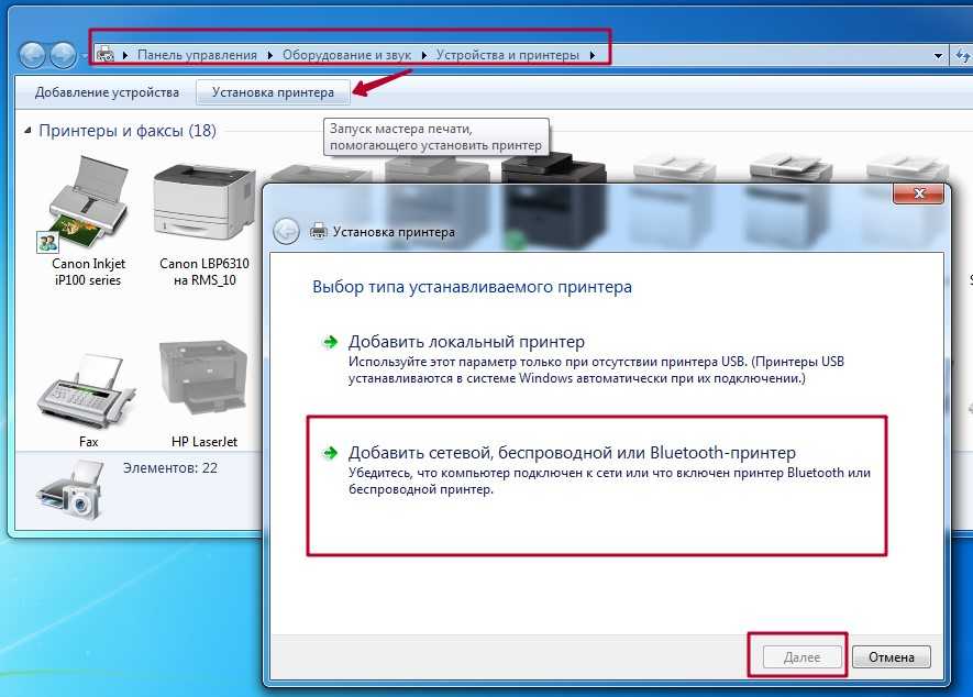 Несколько вариантов подключения сетевого принтера.Способ через мастер установки Виндовс, по имени или IP адресу.