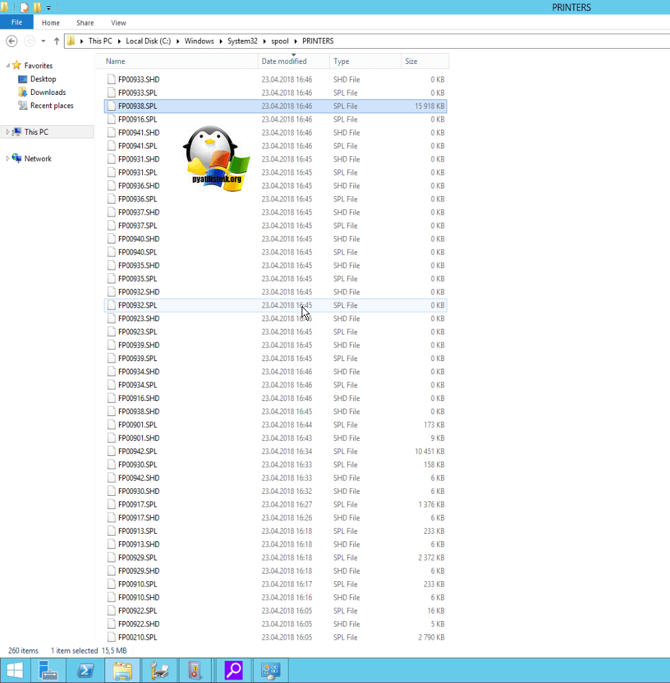 Далее в Windows 10 и других версиях есть папка C:WindowsSystem32spoolPRINTERS