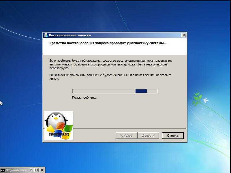 7 Подождите пока Восстановление при загрузке найдет проблемы и устранит их.