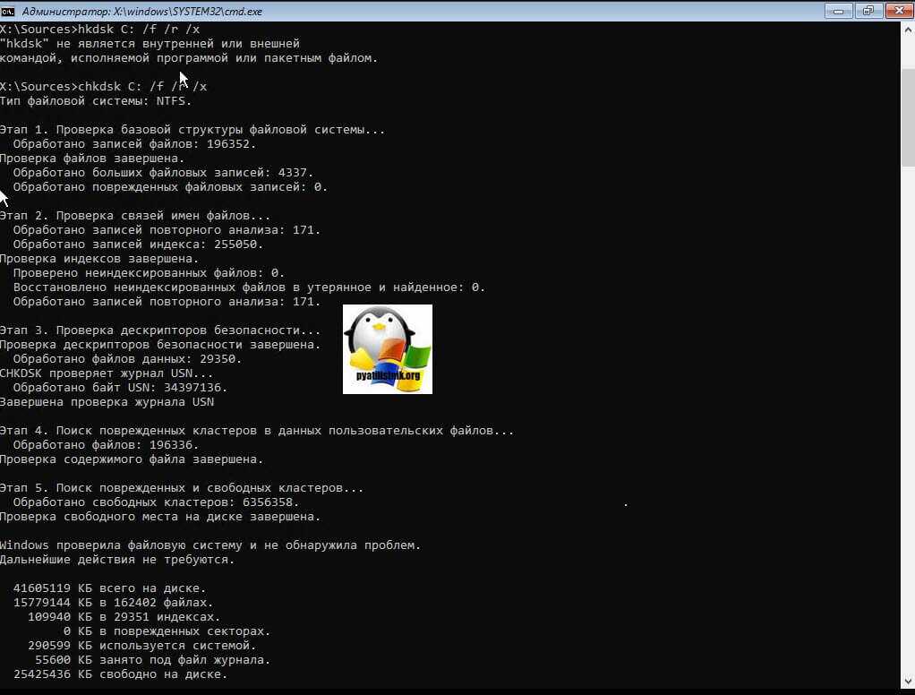 У вас будет выполнены пять этапов проверки, по результатам которых вы увидите все ли хорошо, есть ли ошибки. В 20% случаев, это исправляет ошибку 0xc0000098 при запуске Windows 7, Windows 10. От правильной работы дисков зависит многое. Когда все заработает, обязательно себе включите точки восстановления системы.