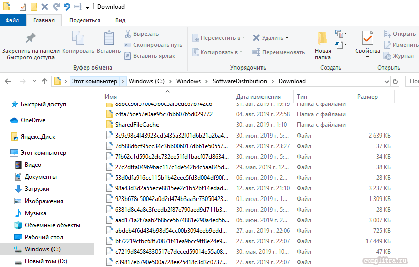 Например, если Windows 10 установлена на диске «C«, откройте его. Перейдите к папке Windows\SoftwareDistribution\Download.
