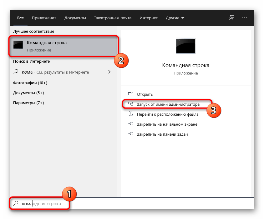 запустить инструмент через раздел «Пуск» или поисковую строку (важно – от имени и с правами Администратора);