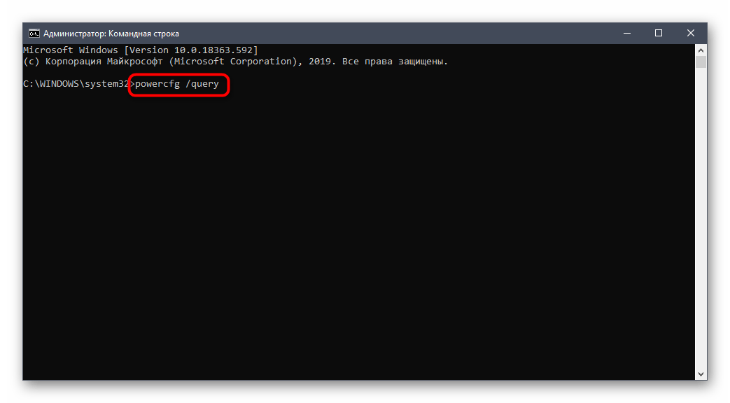 в рабочем окне ввести запрос «powercfg /query», подтвердить клавишей «Enter»;