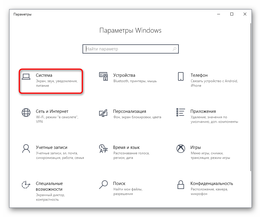 выбрать блок «Система»;