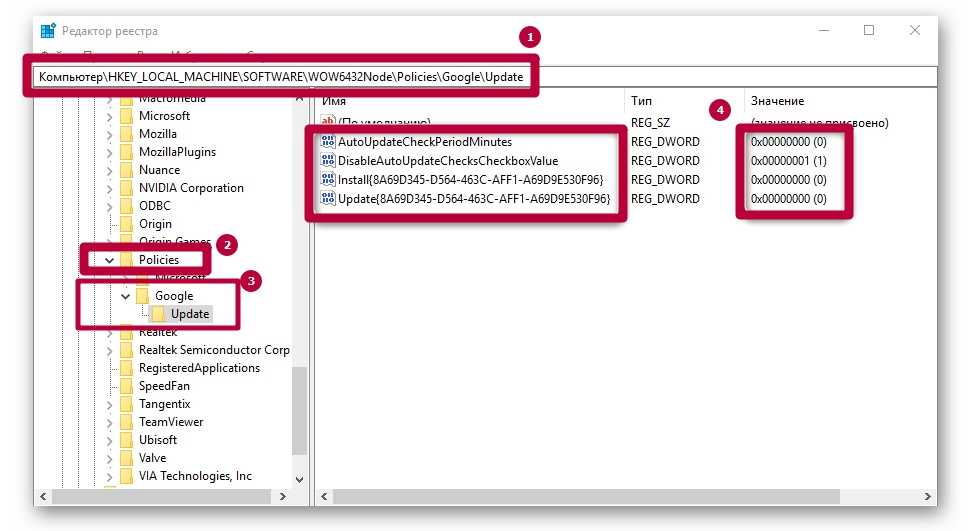 После описанных действий Гугл Хром не будет загружать файлы обновлений и изменяться без ведома пользователя. Чтобы восстановить работоспособность службы обновлений потребуется просто удалить сформированные параметры из реестра.
