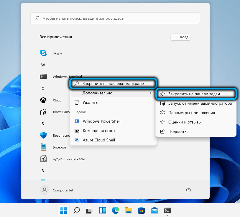 Как открыть Терминал Windows 11 через панель задач