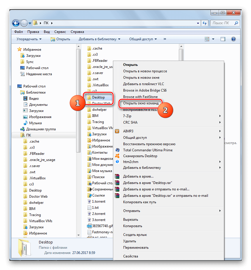 Следующий метод вызова командной строки из Проводника позволяет выбрать режим утилиты. Для начала перейдите в каталоге, который будет являться стартовым для приложения. Затем следуйте инструкции: