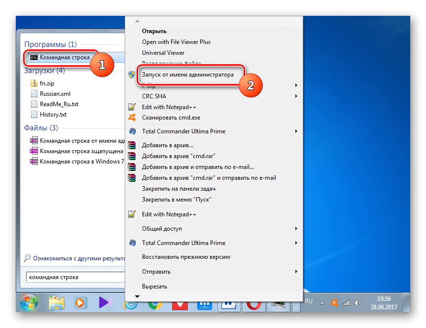 Классический способ предполагает два варианта открытия консоли: с обычными правами и привилегиями администратора. Если последняя опция в контекстном меню отсутствует, можно попробовать выполнить следующую инструкцию: