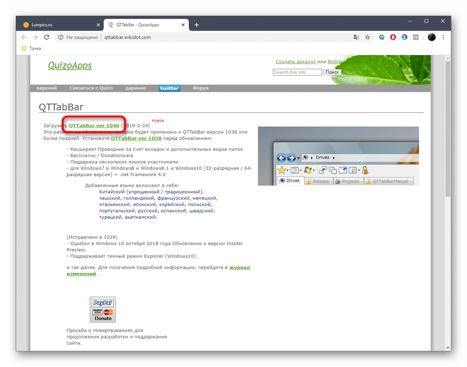 Скачать QTTabBar с официального сайта