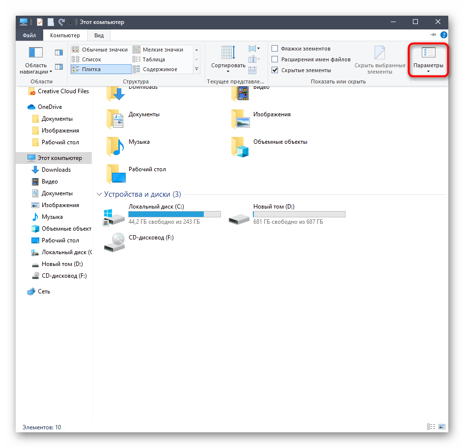 Чтобы зайти в параметры папок вы также можете использовать следующие способы: