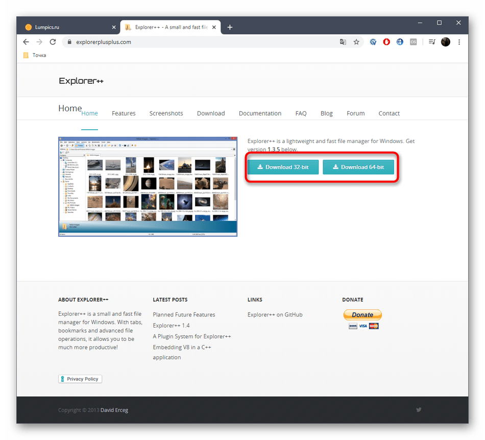 - При скачивании Explorer++ со страницы разработчиков учитывайте разную разрядность сборок, чтобы точно получить совместимую с операционной системой версию.