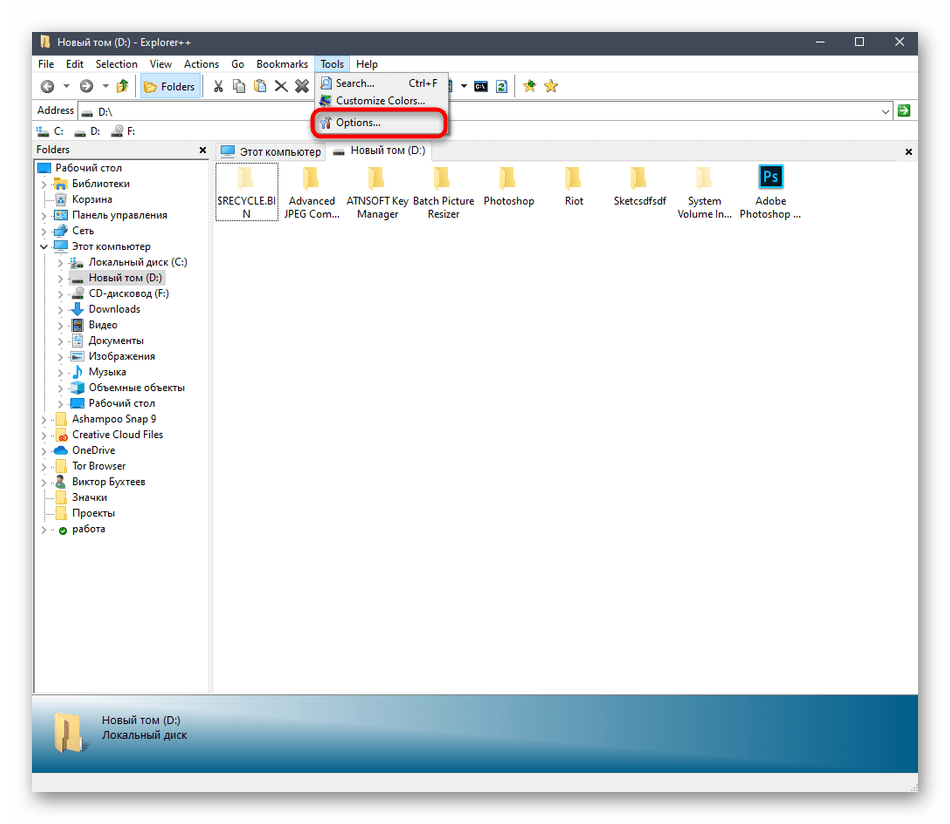 Все настройки, связанные с работой Explorer++, находятся в разделе «Options», переход к которому происходит через меню «Tools».