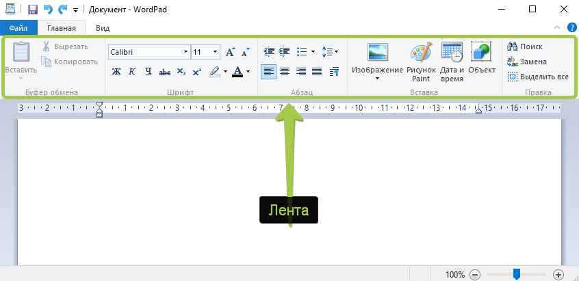 На следующем скриншоте можно увидеть внешний вид текстового редактора WordPad: