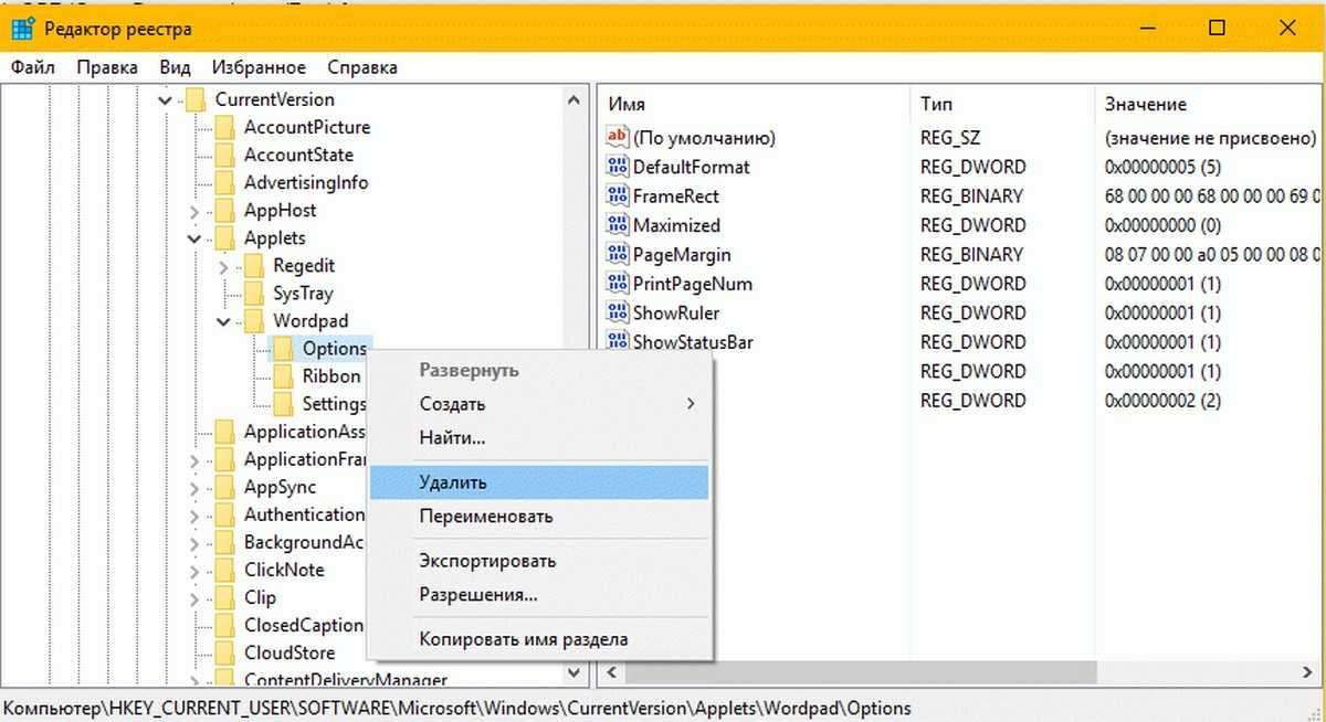 Теперь давайте посмотрим, как сбросить настройки по умолчанию для WordPad в ОС Windows 10. Но прежде чем начать, вы можете создать точку восстановления системы или резервную копию реестра.