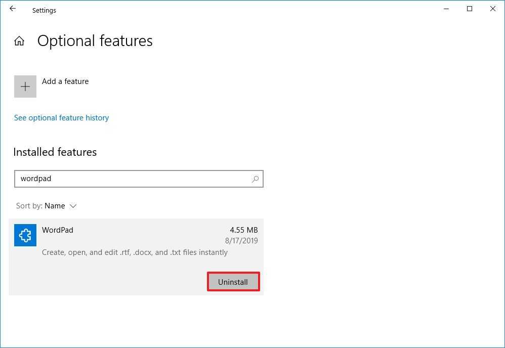 Начиная с Windows 10 Build 18980, Microsoft преобразовала WordPad в дополнительную функцию, которая позволяет при необходимости удалить или переустановить WordPad для экономии места на диске.