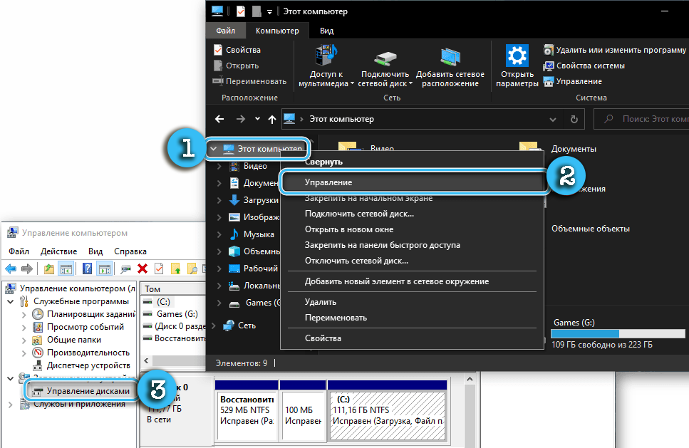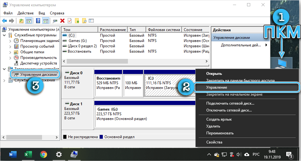 Через приложение «Управление компьютером»