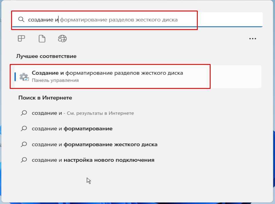 1) Доступ к управлению дисками из поиска Windows 11