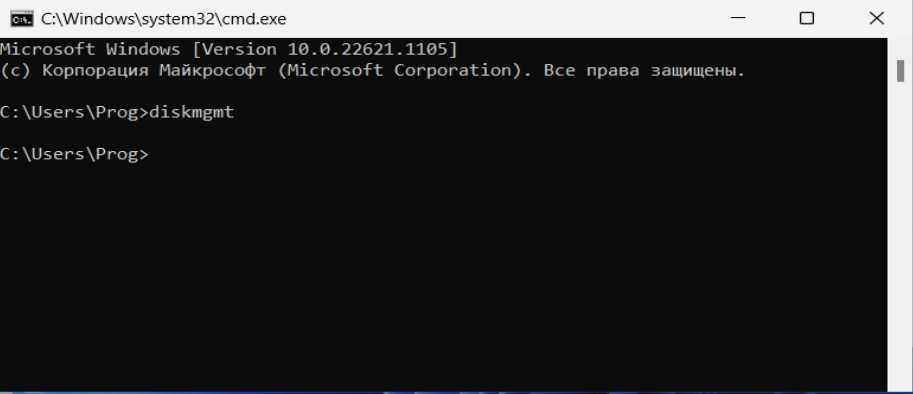 - В открывшемся окне ввести команду diskmgmt.msc.