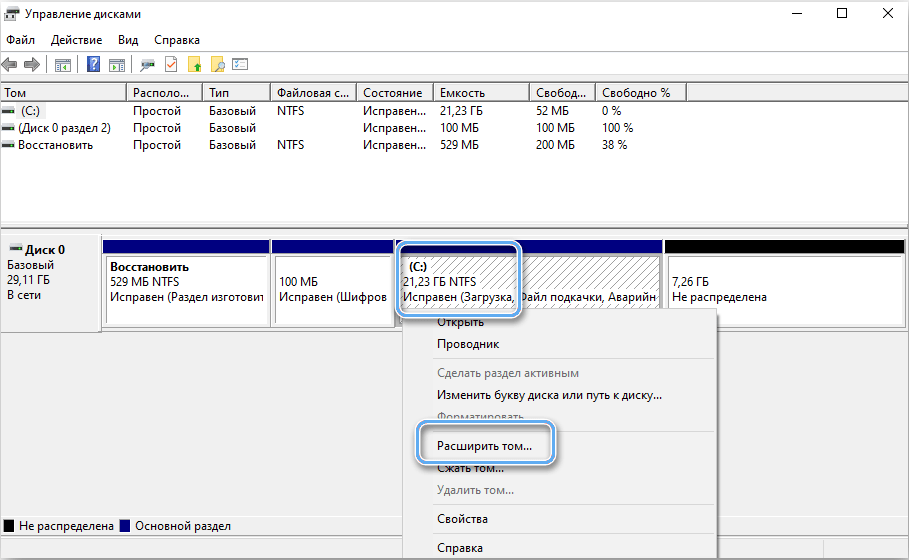 В результате будет открыто окно «Управление дисками».