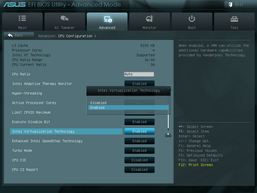 • Как минимум двухъядерный процессор; • Как минимум 4 Гб RAM; • Поддержка процессором аппаратной виртуализации – технологий Intel VT (Intel Virtualization Technology) или AMD-V (AMD Virtualization, она же Secure Virtual Machine (SVM)).