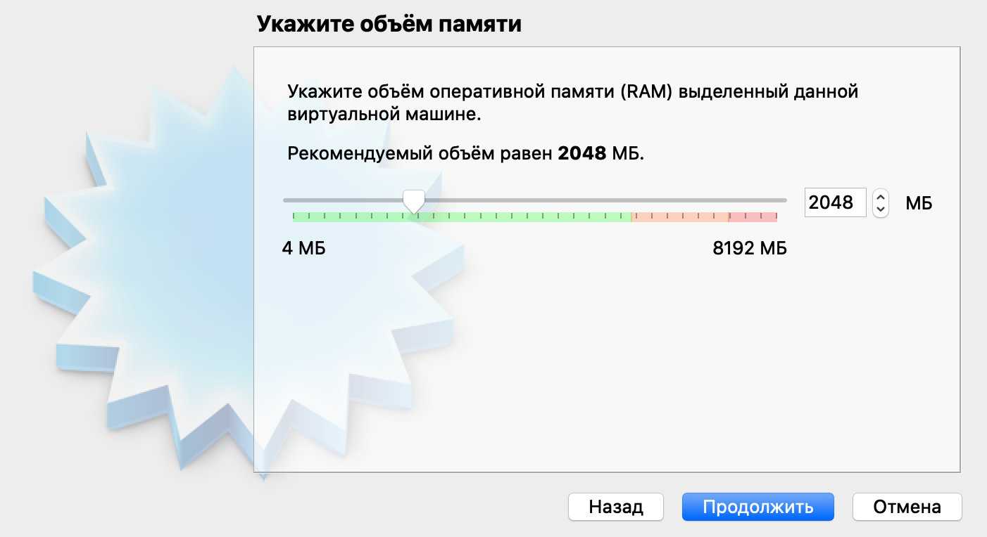 Шаг 4. Определите объем оперативной памяти, который сможет использовать операционной системы. 2048 МБ для несложных задач будет достаточно.