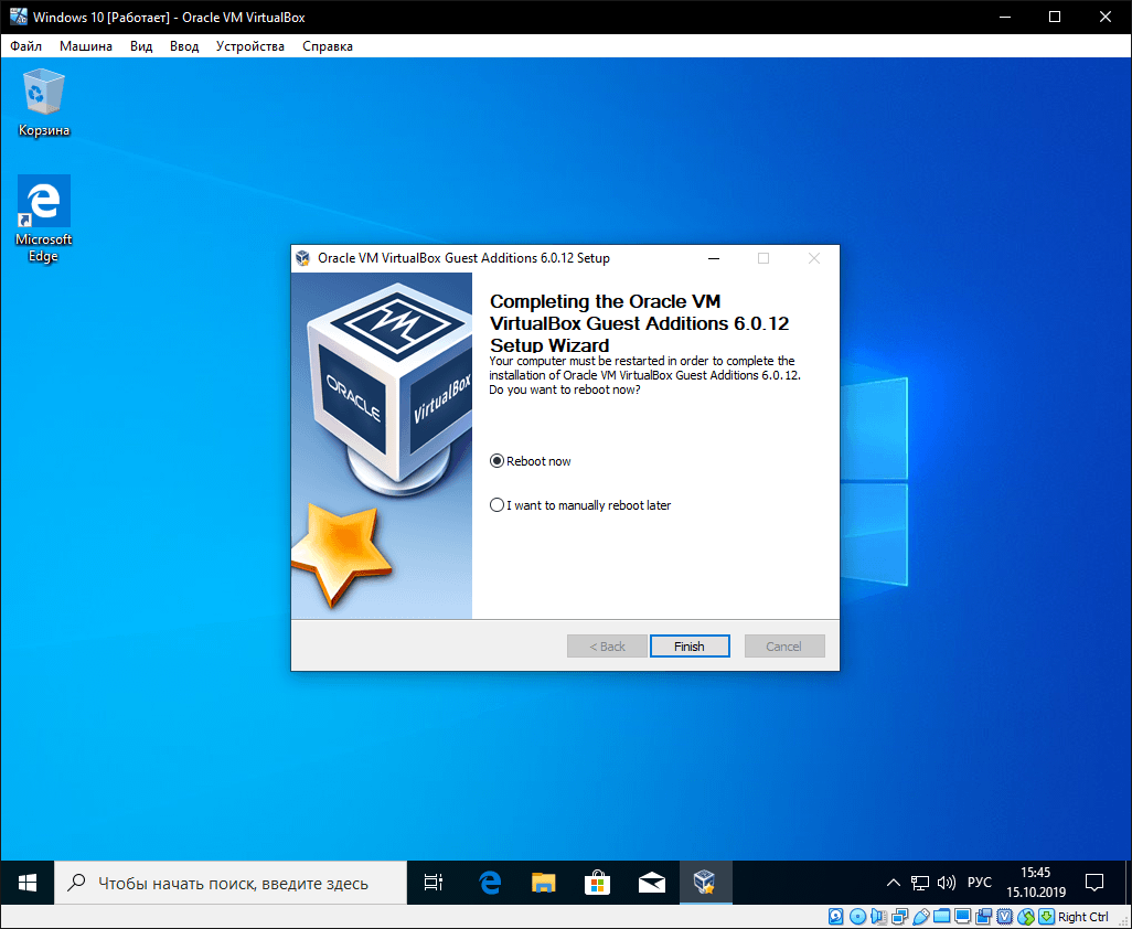 По окончании нажмите «Finish» и дождитесь перезагрузки виртуальной машины.