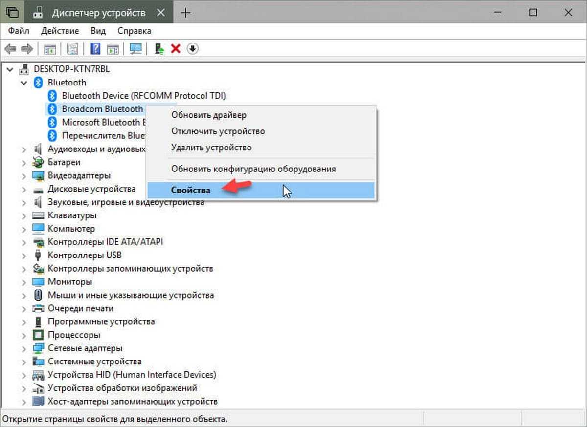 Получив доступ, вам нужно щелкнуть на самом устройстве BT, поскольку именно это позволит выбрать пункт «Свойства».