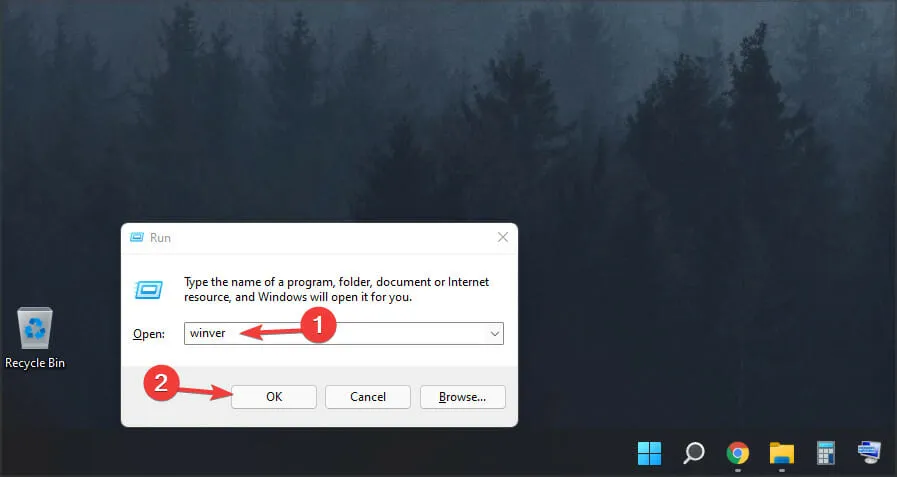 Теперь введите winver и нажмите Enter или щелкните OK.