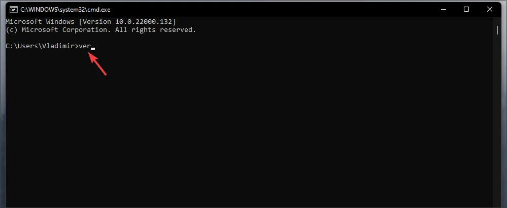 - Когда откроется командная строка, введите вер и нажмите Входить.
