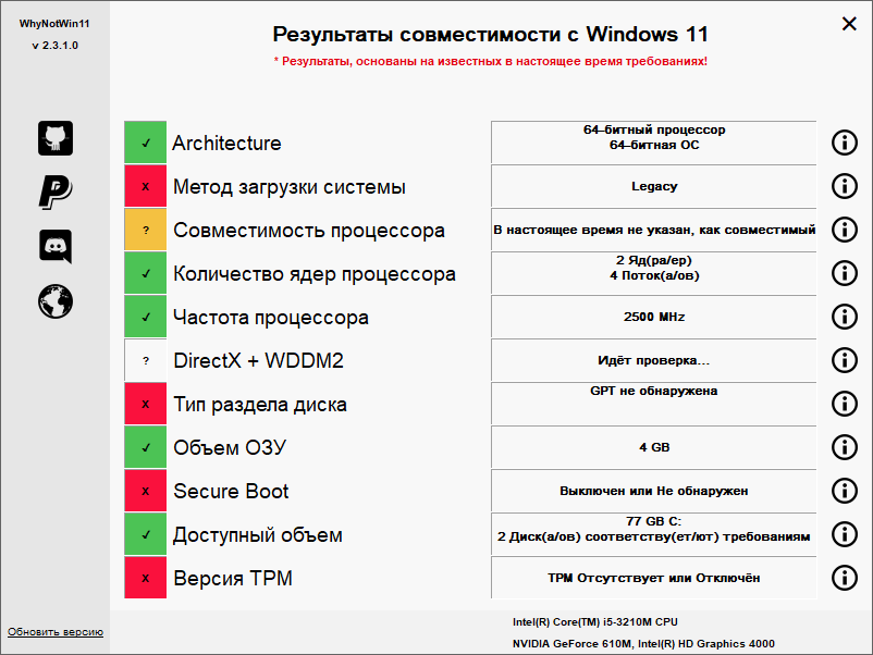 Программа WhyNotWin11, написанная энтузиастами, работает с гораздо меньшим количеством ложных срабатываний, осуществляя проверку компа на совместимость с новой версией Windows по 11 критериям.