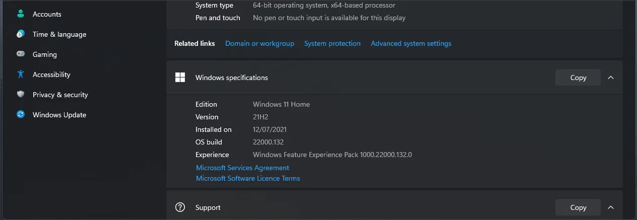 - Тип системы(System type) — указанный в разделе «Характеристики устройства(Device specifications) » означает, что Windows 11 — это 64-разрядная операционная система.