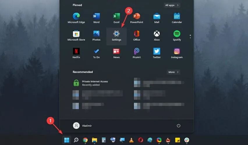 - Откройте меню «Пуск» и выберите Приложение настроек.