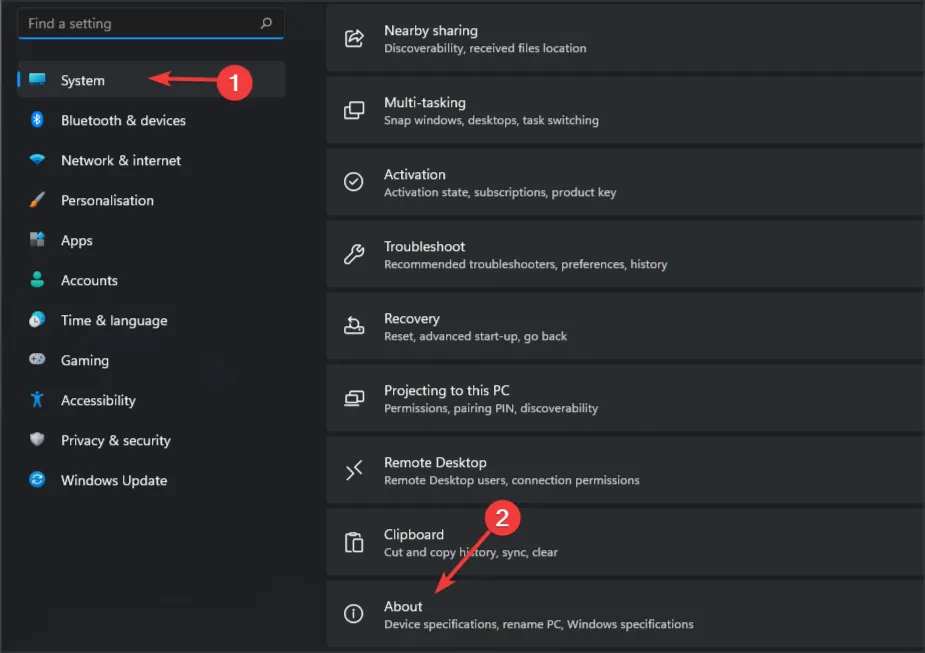 В настройках Windows 11 выберите « (Windows 11)Система»(System) > «О программе».