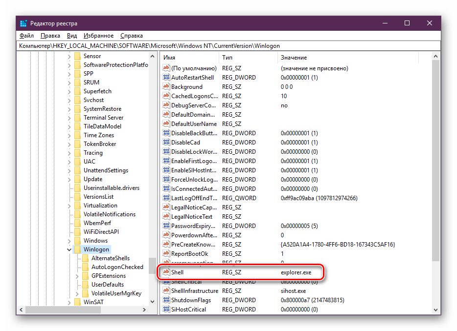Когда упомянутое выше классическое приложение не запускается, следует проверить параметры через «Редактор реестра». Возможно, придется самостоятельно изменить некоторые значения, чтобы наладить функционирование рабочего стола. Проверка и редактирование производится за несколько шагов: