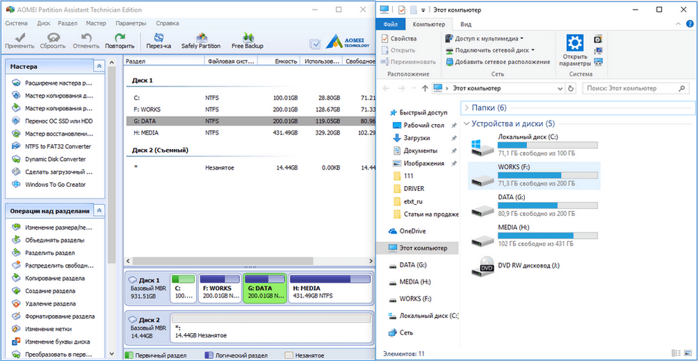 Разбить диск на разделы при помощи таких универсальных утилит разберем на примере программы AOMEI Partition Assistant, которую можно установить на компьютер, как стандартное приложение, или пользоваться ей из портативного режима.