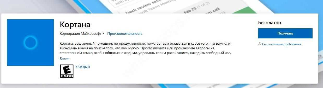Шаг 1: Откройте страницу приложения Cortana в магазине Microsoft.