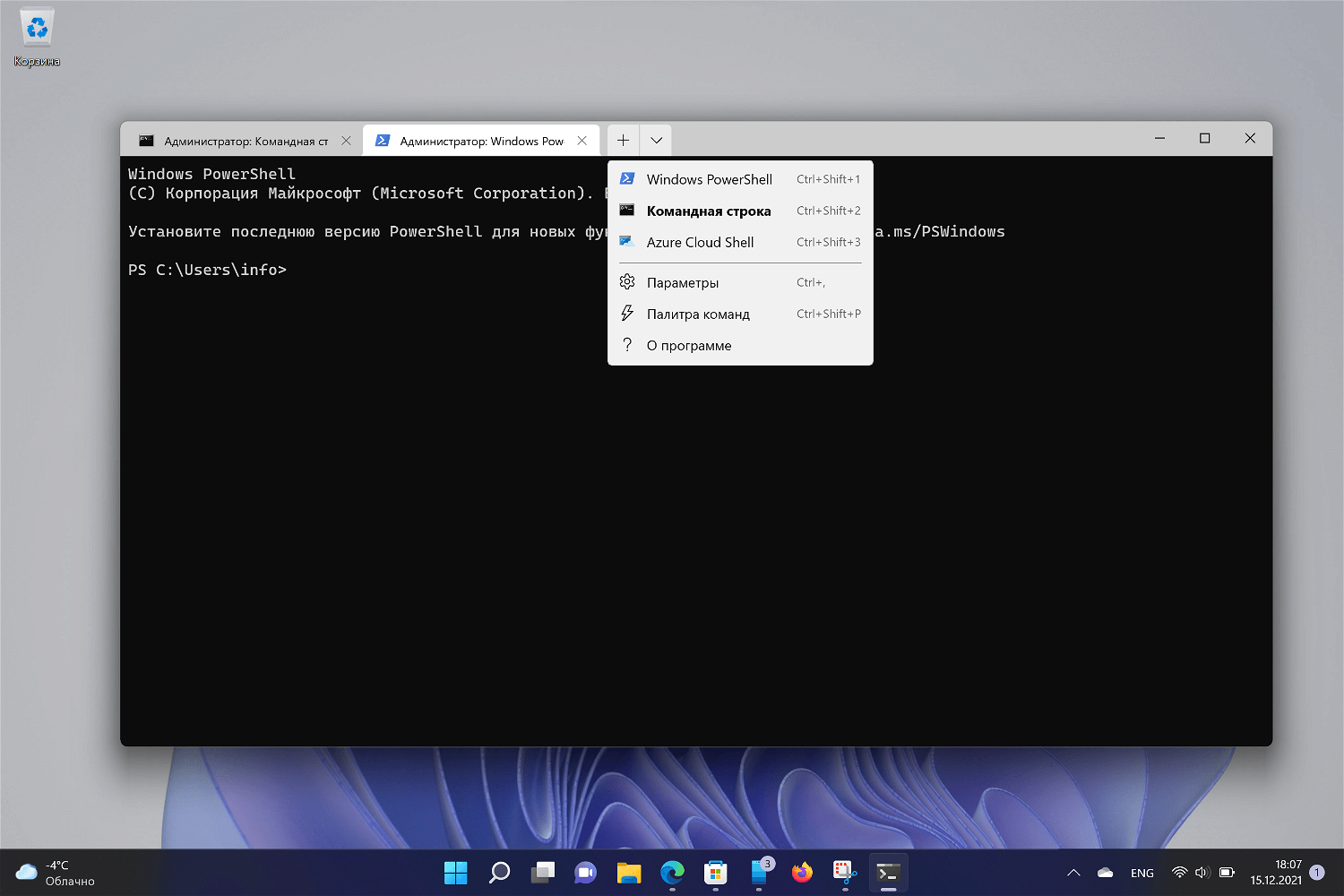 По умолчанию в Терминале Windows должны отображаться вкладка PowerShell. Если вас открыта другая вкладка, выберите Windows PowerShell из раскрывающегося меню на верхней панели.