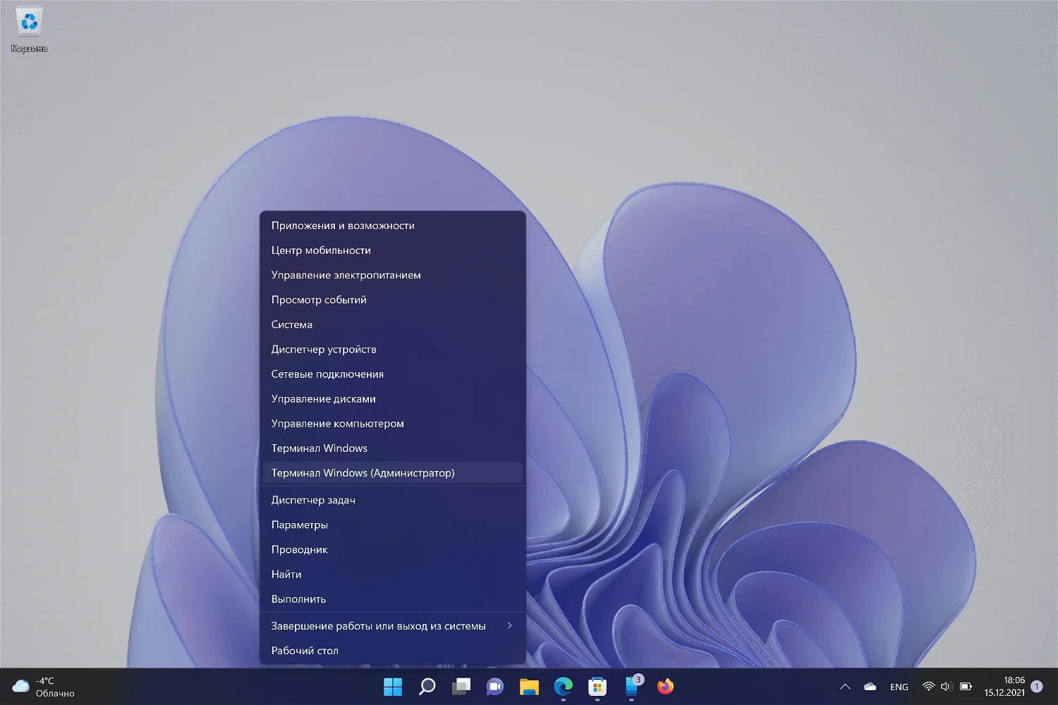 - Щелкните правой кнопкой мыши меню «Пуск».