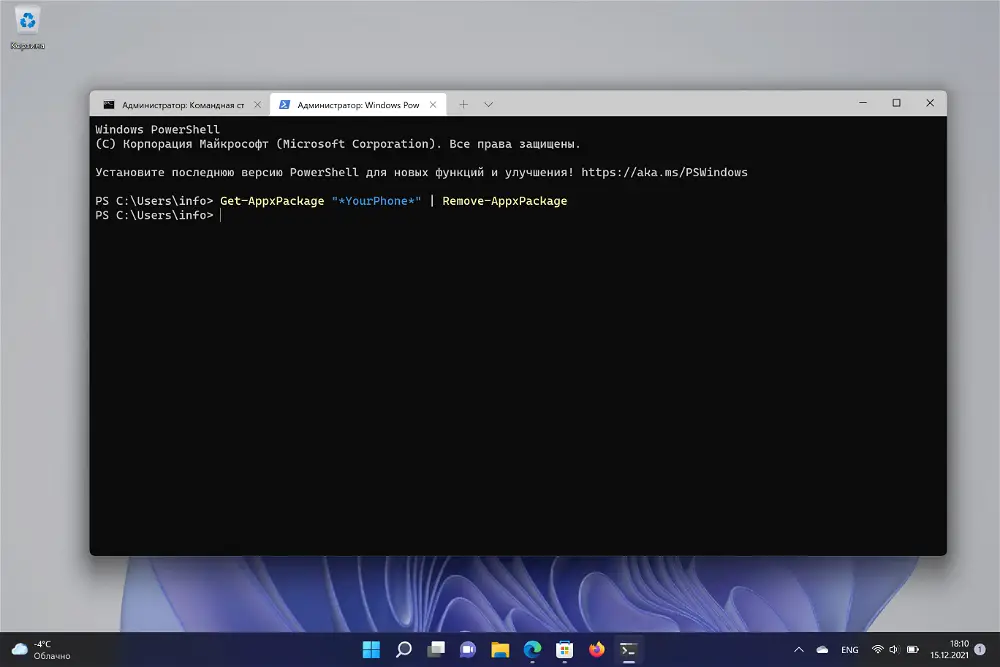 Чтобы удалить приложение «Ваш телефон» в Windows 11, необходимо выполнить команду PowerShell от имени администратора: