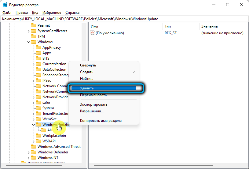 Если возникла необходимость вернуть автоматические обновления Windows, просто удаляем ранее созданный раздел «WindowsUpdate».