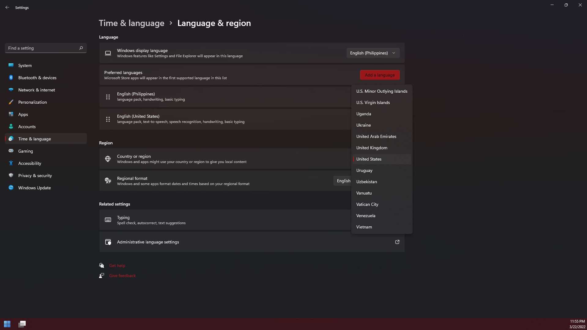 Note:- Please make sure, you have selected the US ( United States ) as your country region in Windows 11 settings.