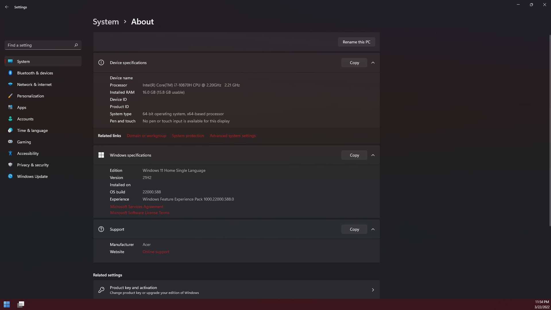 To check your hardware specifications, press the Start Button, then click on Settings. Under System, scroll down until you find About. You should see your processor, installed RAM, system type under Device specifications. Meanwhile, you can find OS build under Windows specifications.