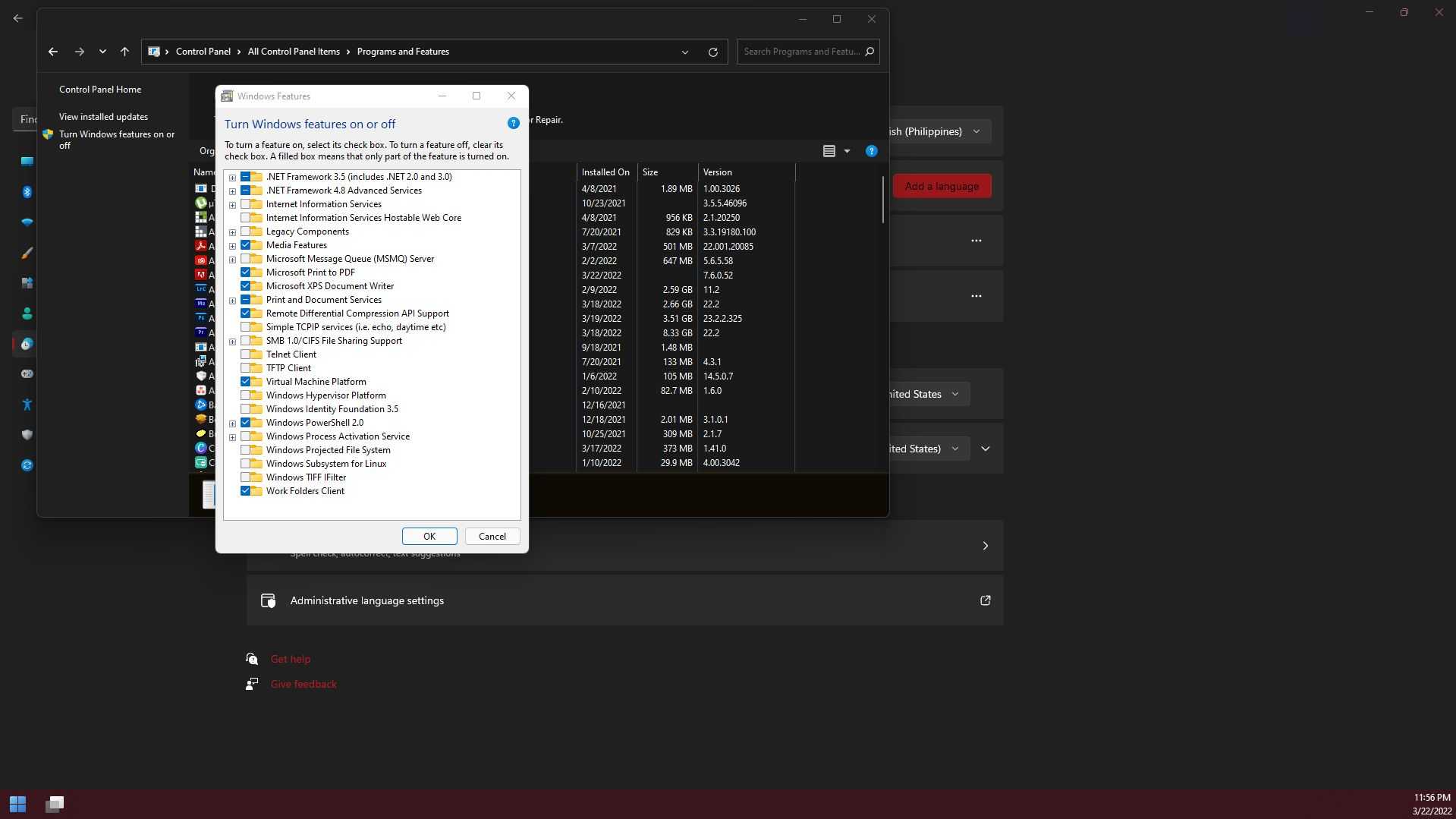 After that, you need to go back to the Settings window, then choose Time & Language > Language & region. Under Region, select Country or region and choose United States in the dropdown menu. After completing this, you must ensure Virtual Machine Platform is enabled.