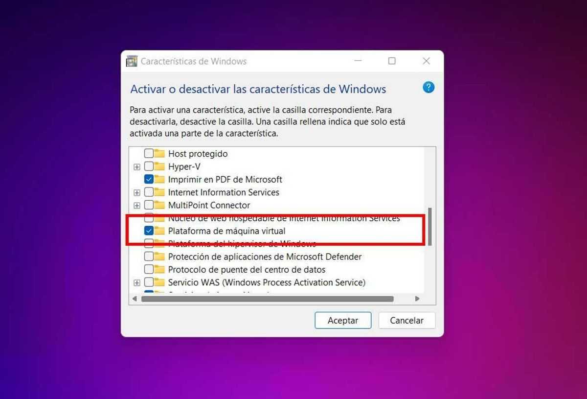 - Если это еще не сделано, включите опцию Virtual Machine Platform.