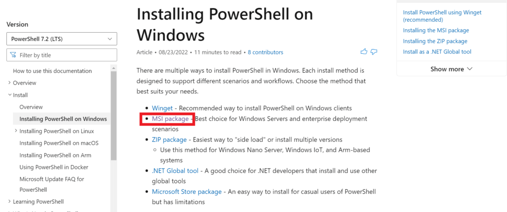 installer matches the version of PowerShell. There’s no stand alone installer for Windows