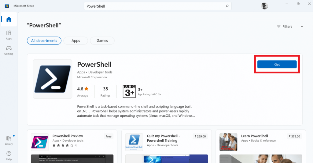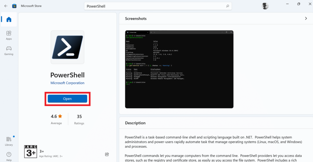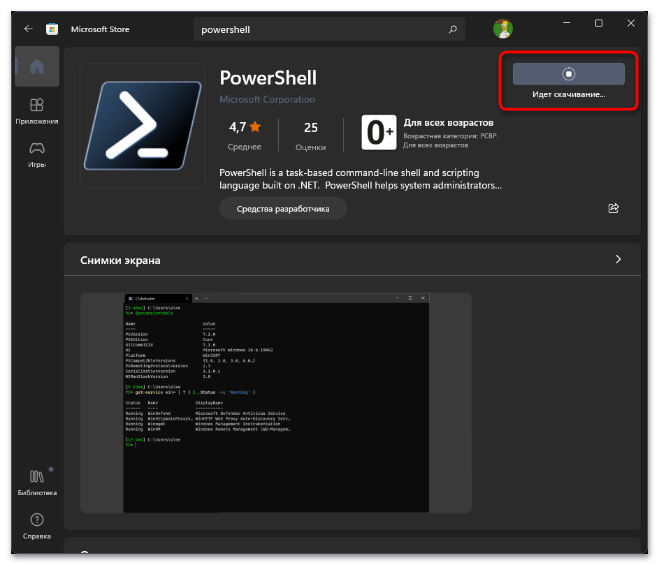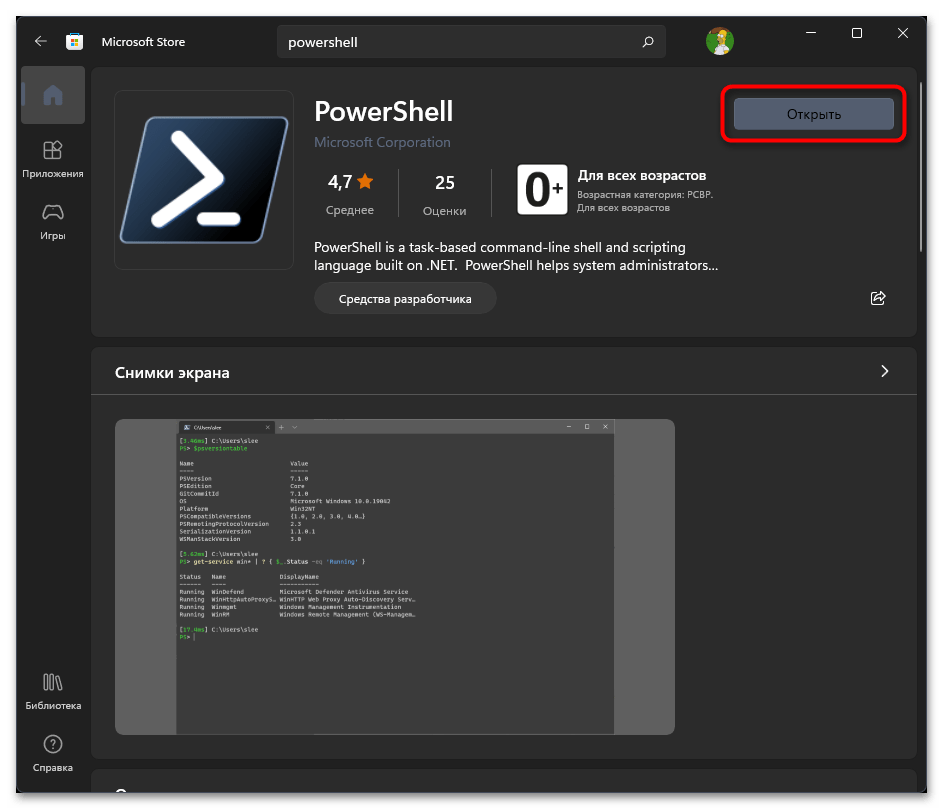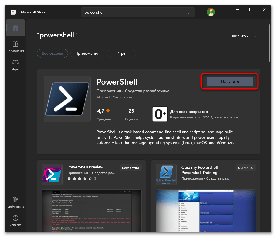 Самый простой способ, как установить Power Shell 7 на Windows 11, это загрузить его с Магазина Майкрософт. Для этого нужно выполнить несколько действий: