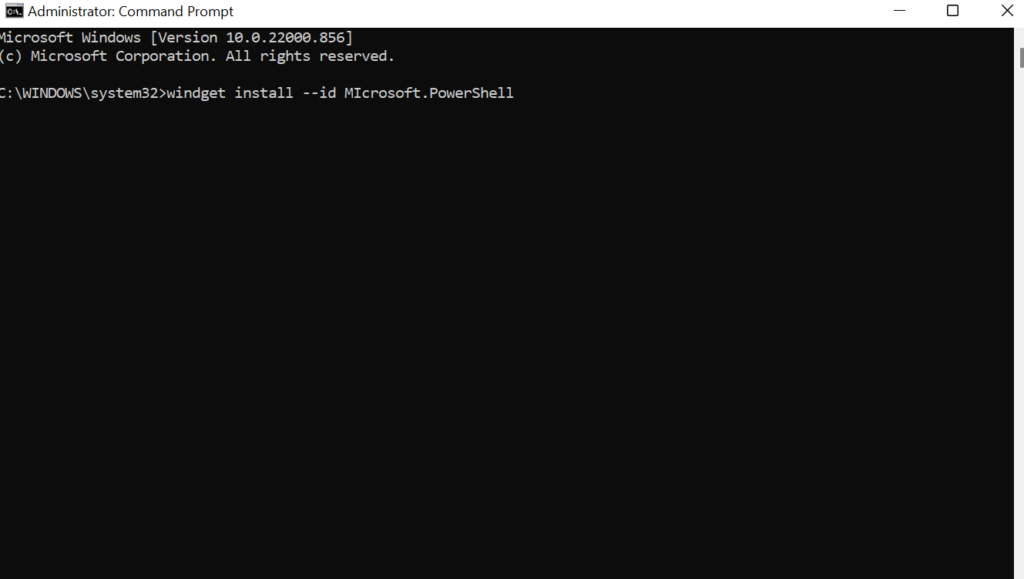 Now enter the following code and hit the enter key: windget install —id Microsoft.PowerShell