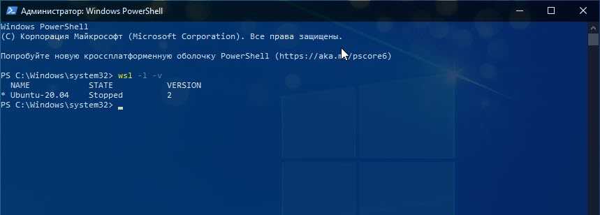 > wsl --set-default-version 2 Для получения сведений о ключевых различиях с WSL 2 перейдите на страницу https://aka.ms/wsl2 Операция успешно завершена.