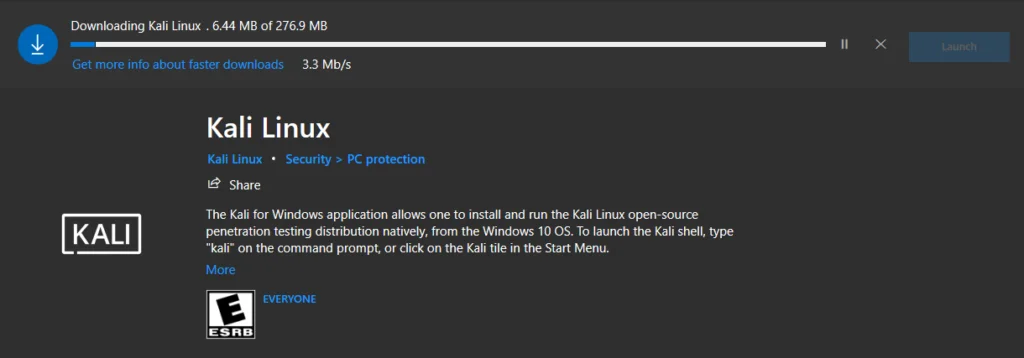 When the download is finished, click on Launch or press the window key and search for Kali Linux.