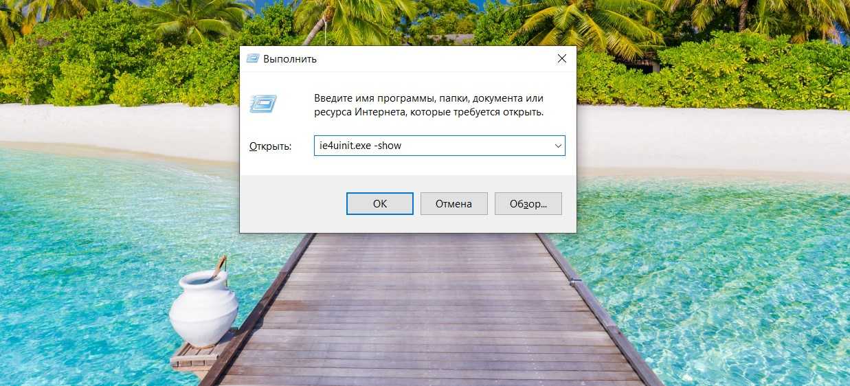 - В поле вставьте команду «ie4uinit.exe -show» без кавычек. Нажмите «Ок».